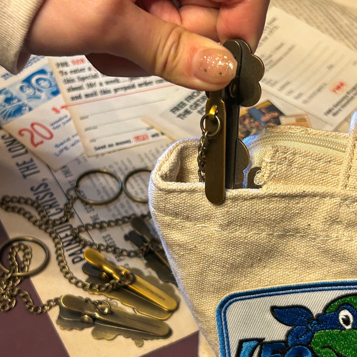 鍵などの小物をチェーンの先に取り付けて、バッグのポケットにクリップで挟むだけで、 紛失防止になり、すぐに鍵を見つけることができます!